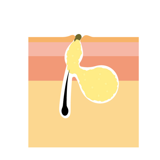 皮脂により毛穴がふさがれてしまうと、抜け落ちた産毛や垢(古い角層)が混ざりあって、角栓となります。