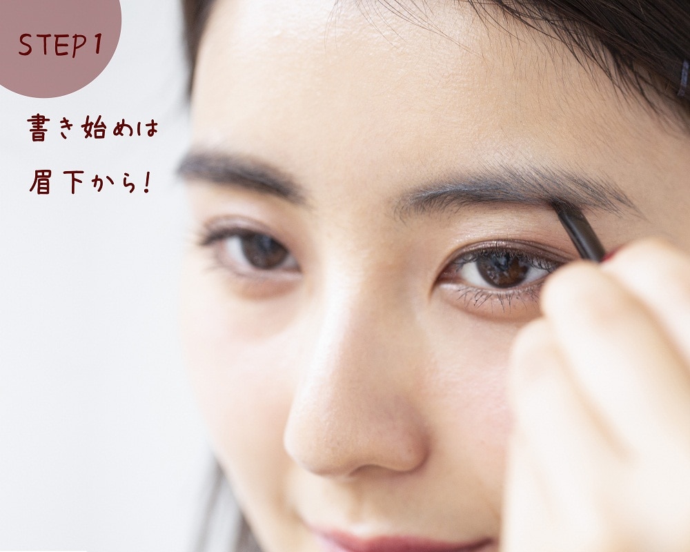 「ゆる~いカーブ」の鍵となる、眉下ラインから描き始めて