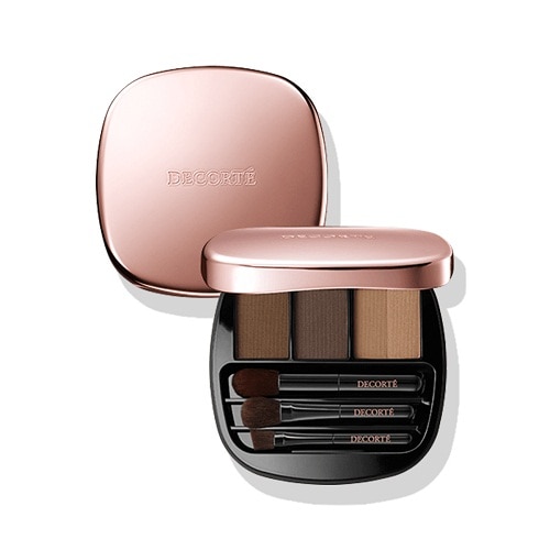 骨格を強調して引き締めるコントゥアリングカラー(右)と、混ぜるだけで色や濃度を自在に調整できる2色のアイブロウパウダー(左・中)のセット。きめ細やかなパウダーが肌にピタッと密着し、描きたて眉をキープ。