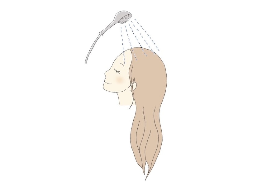 まず、約1~2分かけて、ぬるま湯でしっかり予洗を。髪の毛と地肌の汚れは、これで6割ぐらい落とせます。