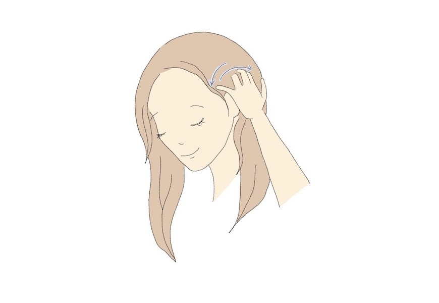 5本の指の腹全体を頭皮に押しあてつつ、くるくると螺旋を描くように。一か所あたり2~3回ずつ螺旋を描き、全体をマッサージしていきましょう。毛穴に詰まった汚れがギュッと揉みだされていき、顔のリフトアップ効果も。