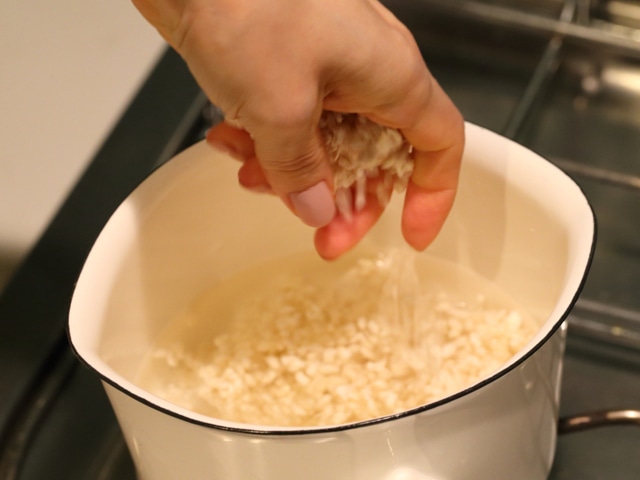 酒粕で作る甘酒は、酒粕を水で溶いて煮詰めて作ります。一方、米麹で作る甘酒は、米麹に水を加え発酵させて作ります。