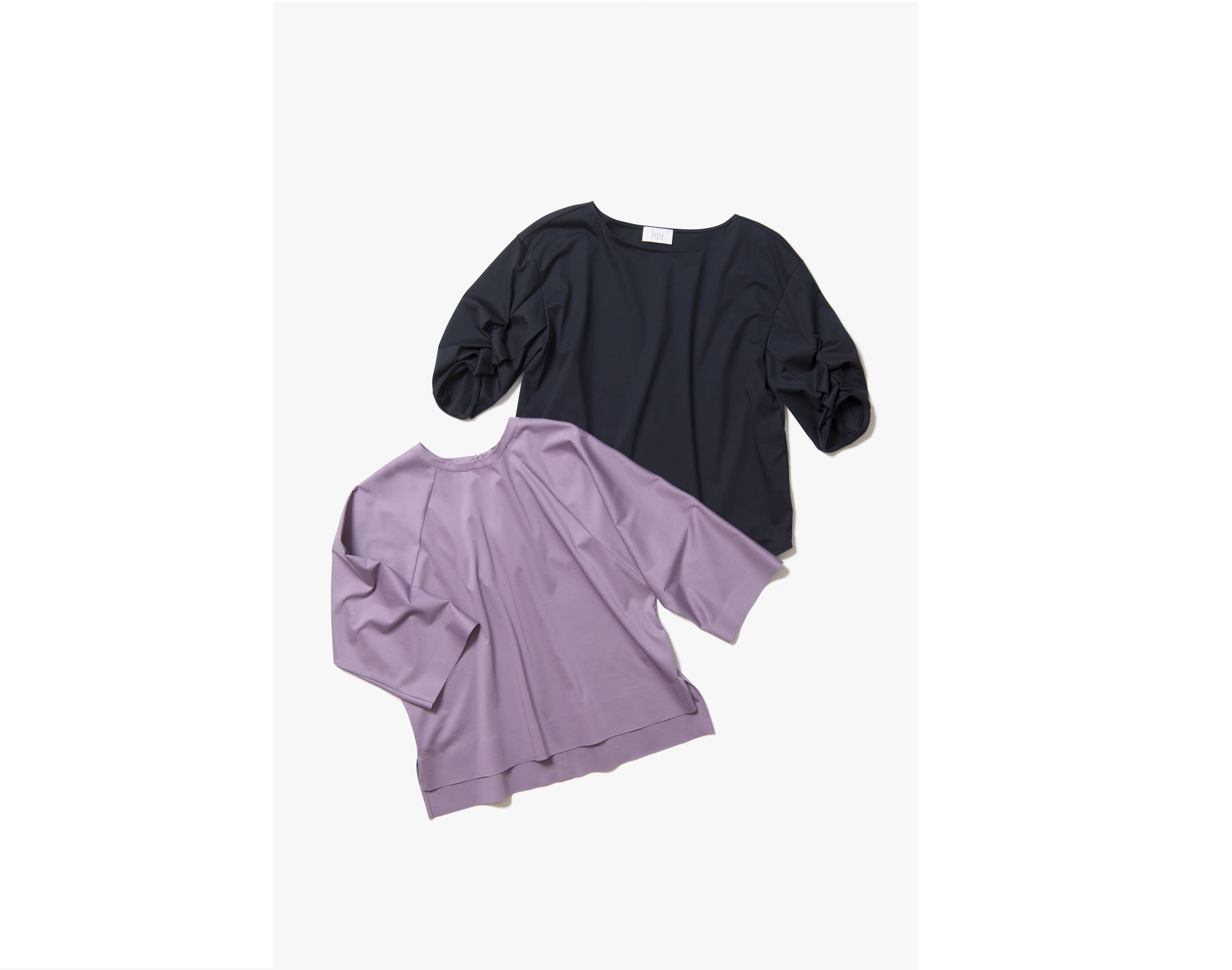 ドルマンスリーブプルオーバー 16,000円、紺プルオーバー 15,000円(すべて税抜)/ともにエス エッセンシャルズ(SANYO SHOKAI カスタマーサポート