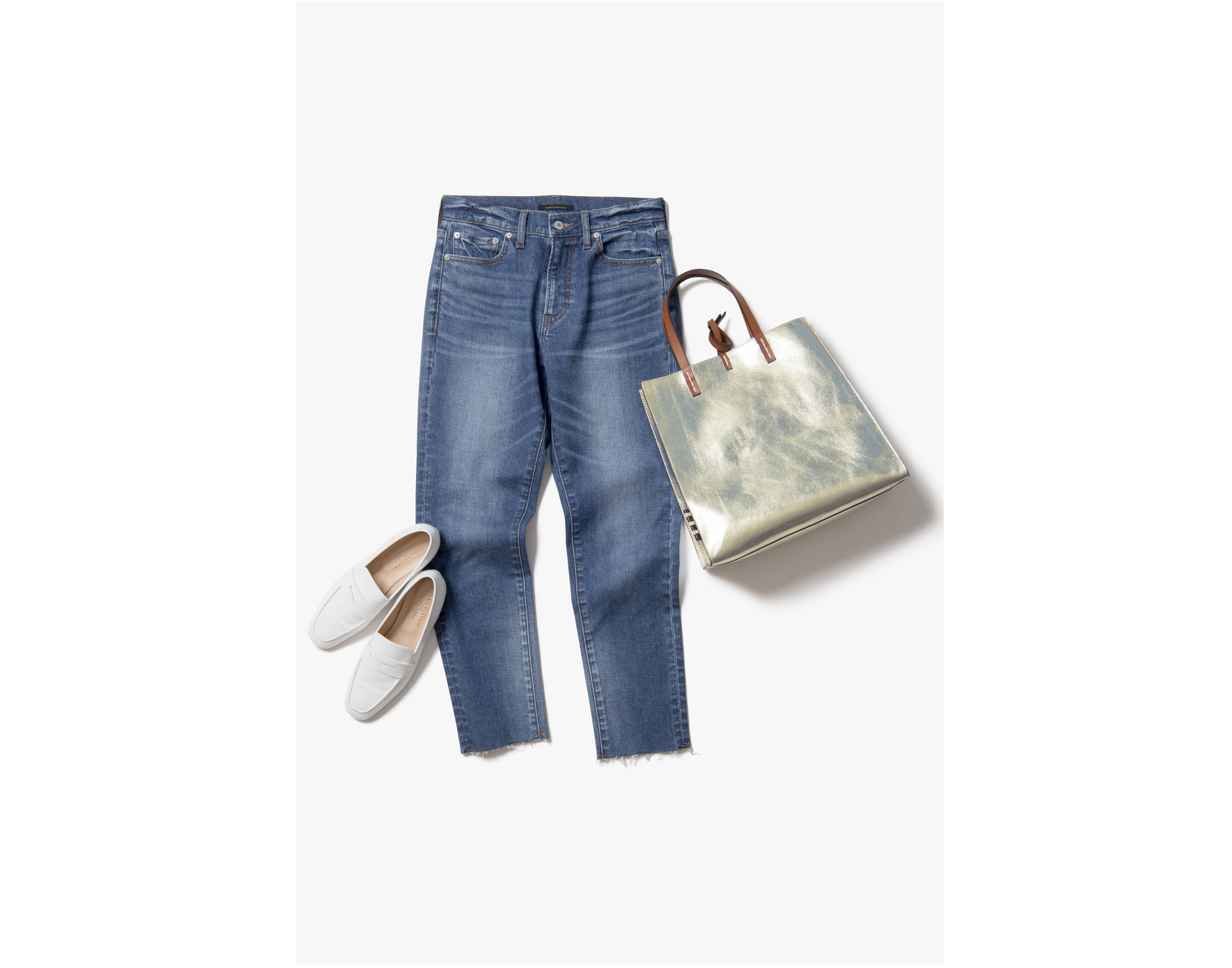 定番デニムもメンズライクな白ツヤローファーでアップデート