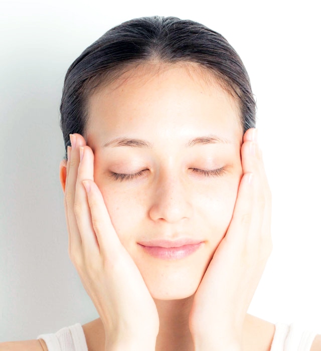 ④最後はクリームを全顔になじませ、ハンドプレスすれば、ふっくらツヤ肌に。