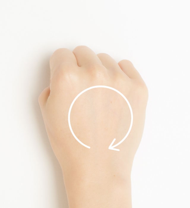 手をグーにしたら、もう片方の手で、手の甲の関節のまわりをくるくるとマッサージする。