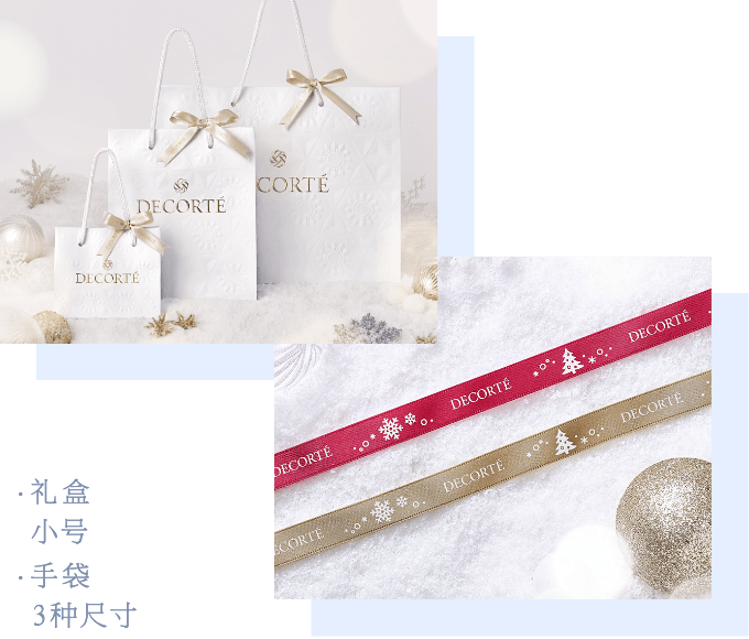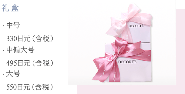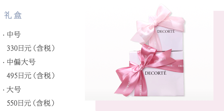 ◀ 限定缎带包装 若顾客购买的护肤品以外的商品总额超过 8,800日元(含税),本店将使用特别缎带进行包装。