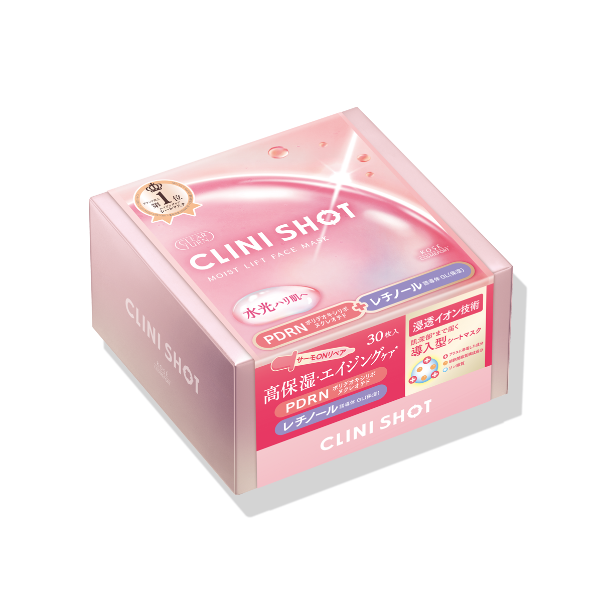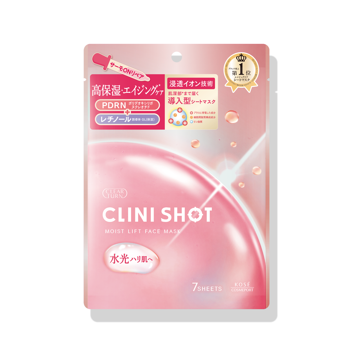 いつものスキンケアにプラス1SHOT。イオン効果による美容液の浸透にこだわった美療発想の導入型シートマスク。むっちりとした水光ハリ肌へみちびく、高保湿・エイジングケア*タイプ。