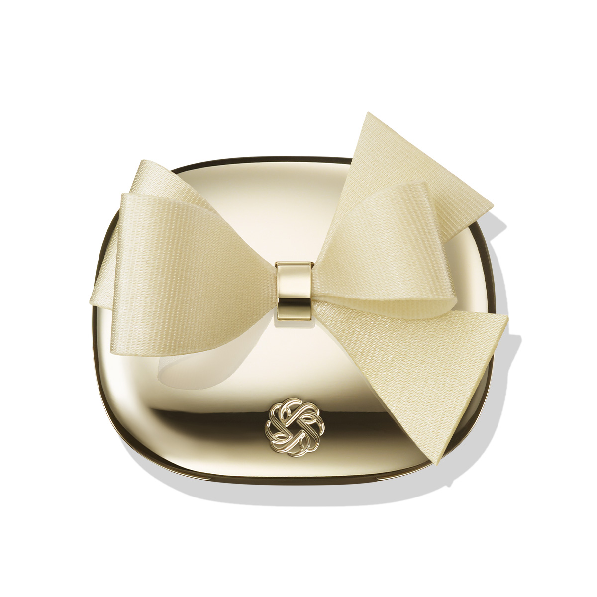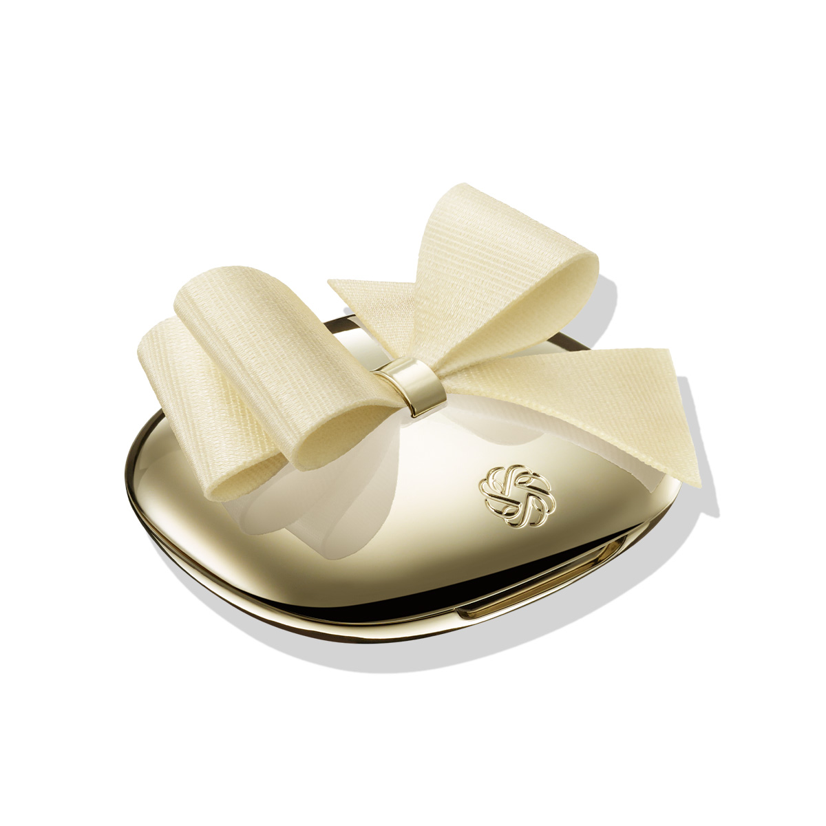 ミモザイエローのリボンを帯のように結んだソリッドパフューム。