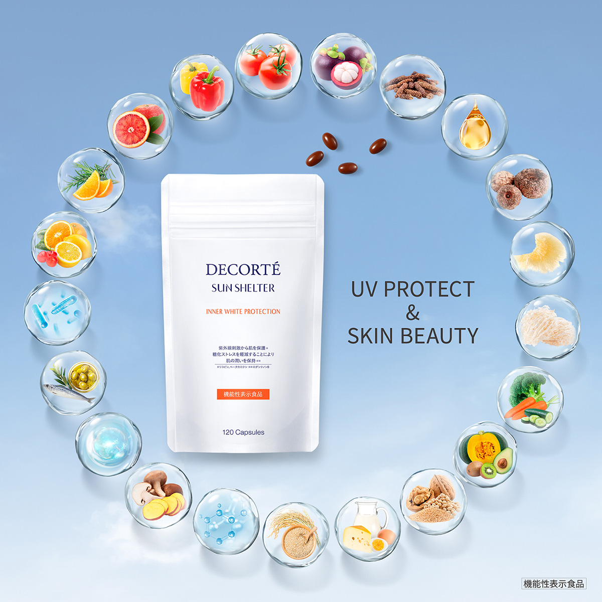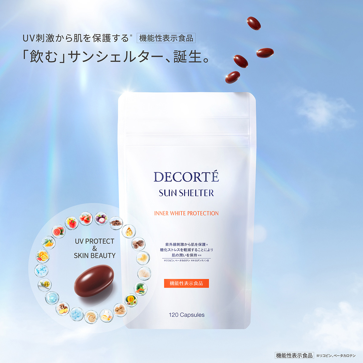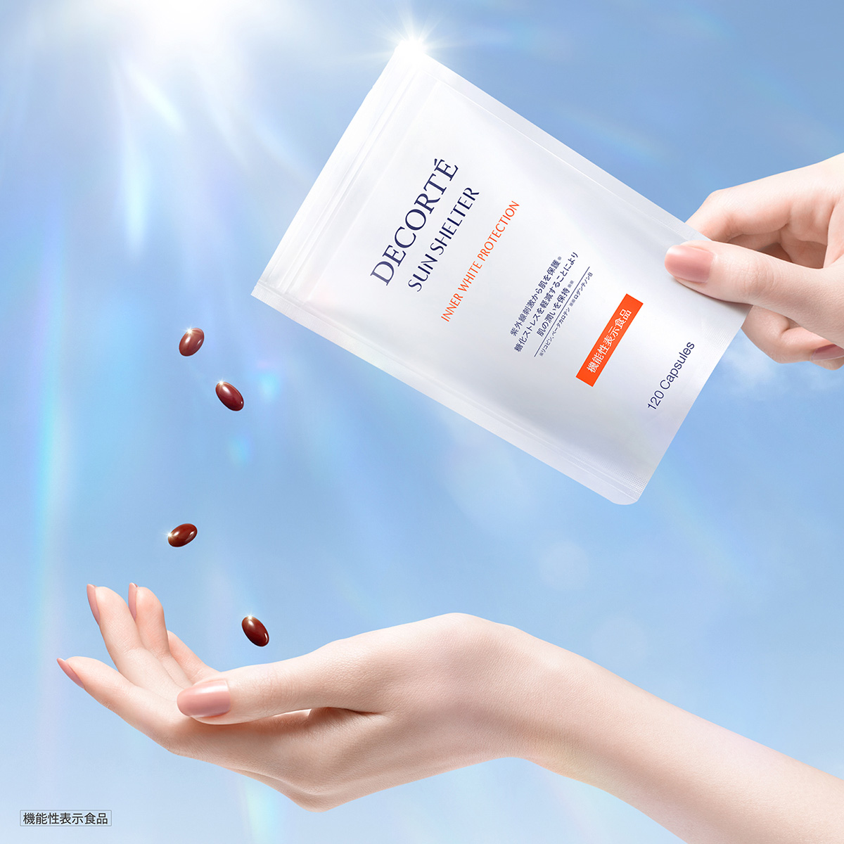 ※2 紫外線刺激から肌を保護する機能性関与成分である「リコピン」「ベータカロテン」の2種類を配合して機能性表示食品として商品化した事実が日本初。(2024年11月時点 消費者庁の機能性表示食品の届出情報検索システムhttps://www.fld.caa.go.jp/caaks/cssc01/における検索結果)