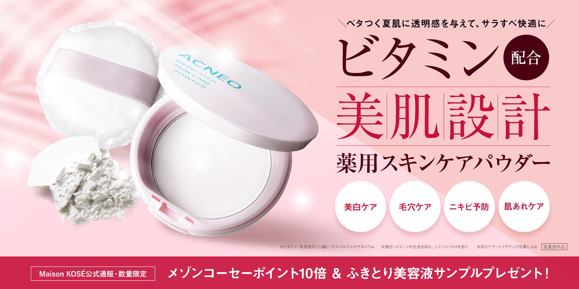 【医薬部外品】2種の有効成分とPLGAポアパウダーを配合した薬用スキンケアパウダー。スキンケアの最後につけるだけで、ニキビケア・毛穴ケア※・美白※ケア・保湿を叶えながら凹凸もふんわりカバーし、毛穴の気にならないキメの整ったサラサラ肌に整えます。(抗菌パフ付き)