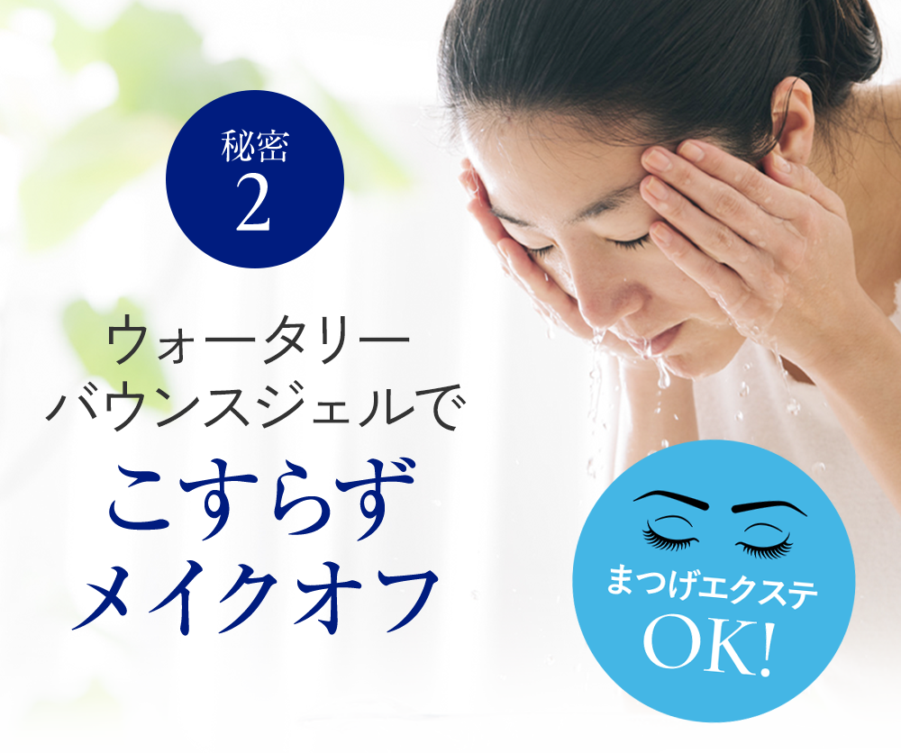 • ●まつげエクステンションをお使いの方は、強くこするとまつ毛自体が抜けやすくなりますので、