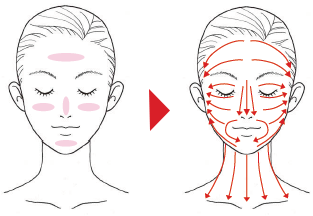 額・両頬・鼻・顎の5点にのせ、ムラなく塗り広げます。