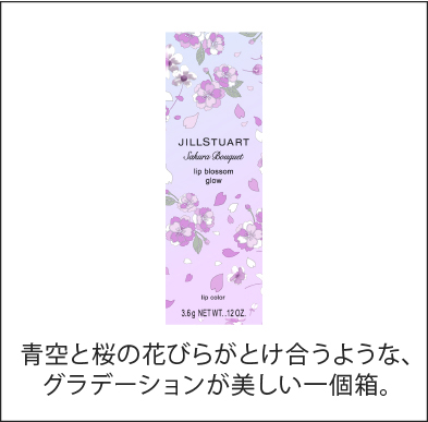 ●なめらかな塗り心地でみずみずしくのび広がり、満開の花のようにツヤめいた彩りが長時間続くリップブロッサム グロウから、春の高揚感を感じる青みピンクの限定色114が登場。また、満開の桜のようなコーラルピンクの定番色10を、サクラブーケの香りと限定デザインでお届けいたします。