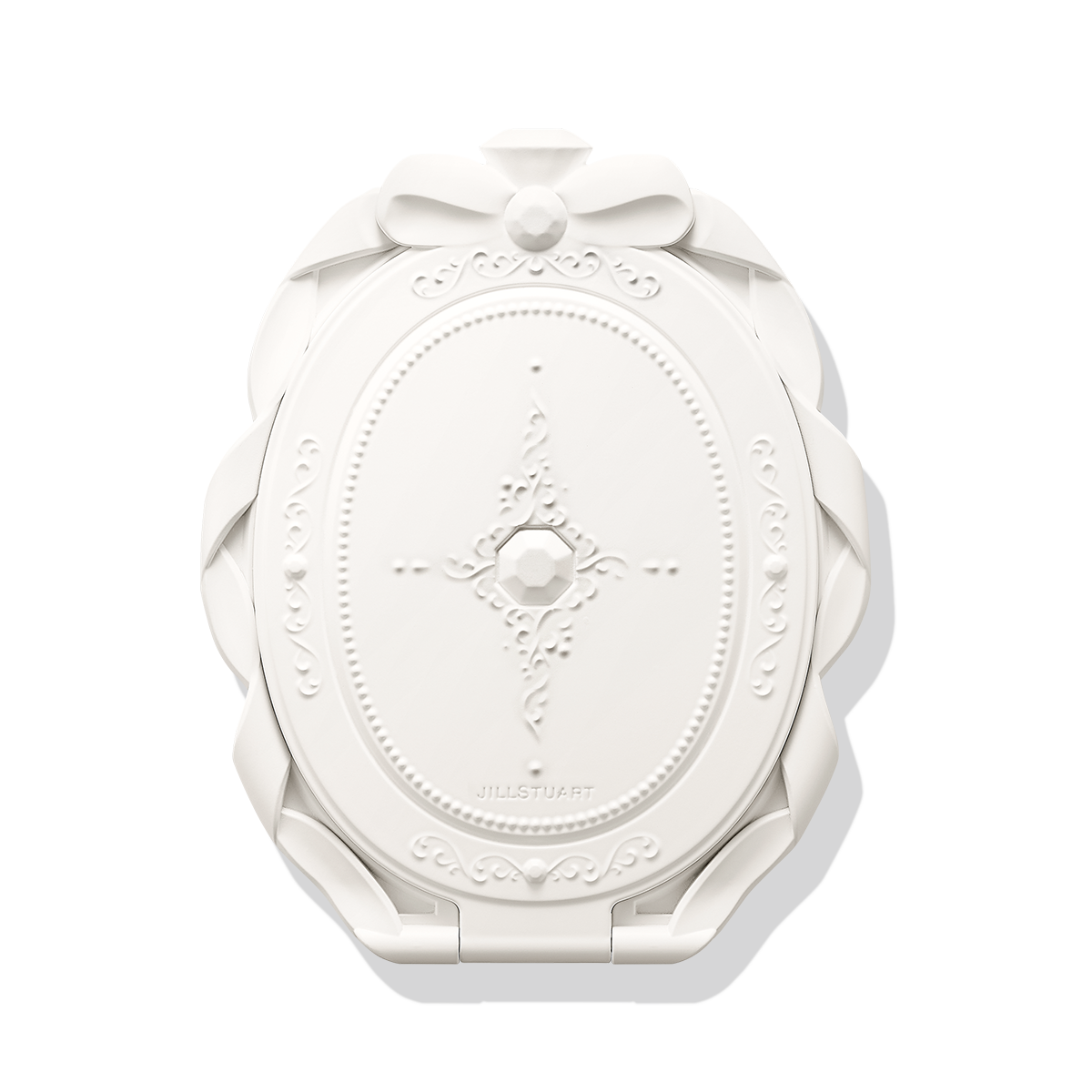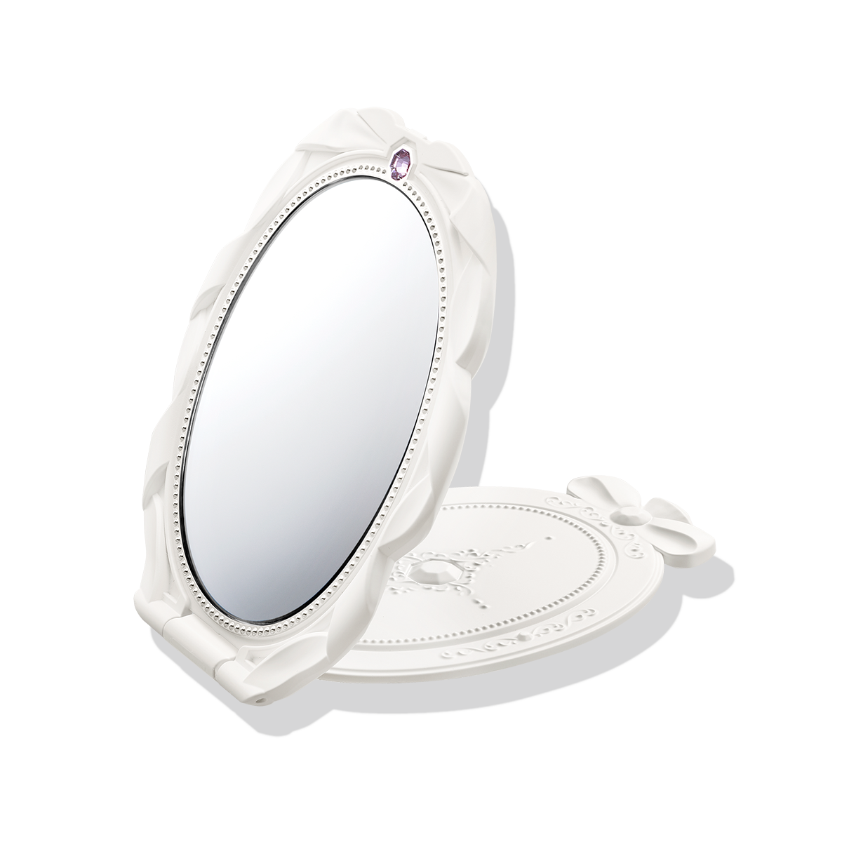 ●陶磁器のようなマットホワイトのカラーで、洗練された可愛らしさを演出しています。ミラーのふたを開くと、スミレの砂糖漬けのようなラベンダーのクリスタルが輝きます。
