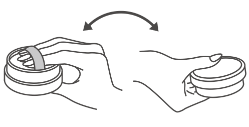 ●中ぶたにパフをあて、容器を逆さにしてパウダーをとり、手の甲でつき具合を見てから、軽くらせんを描くように肌にのばします。