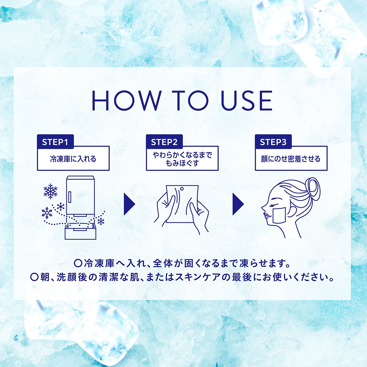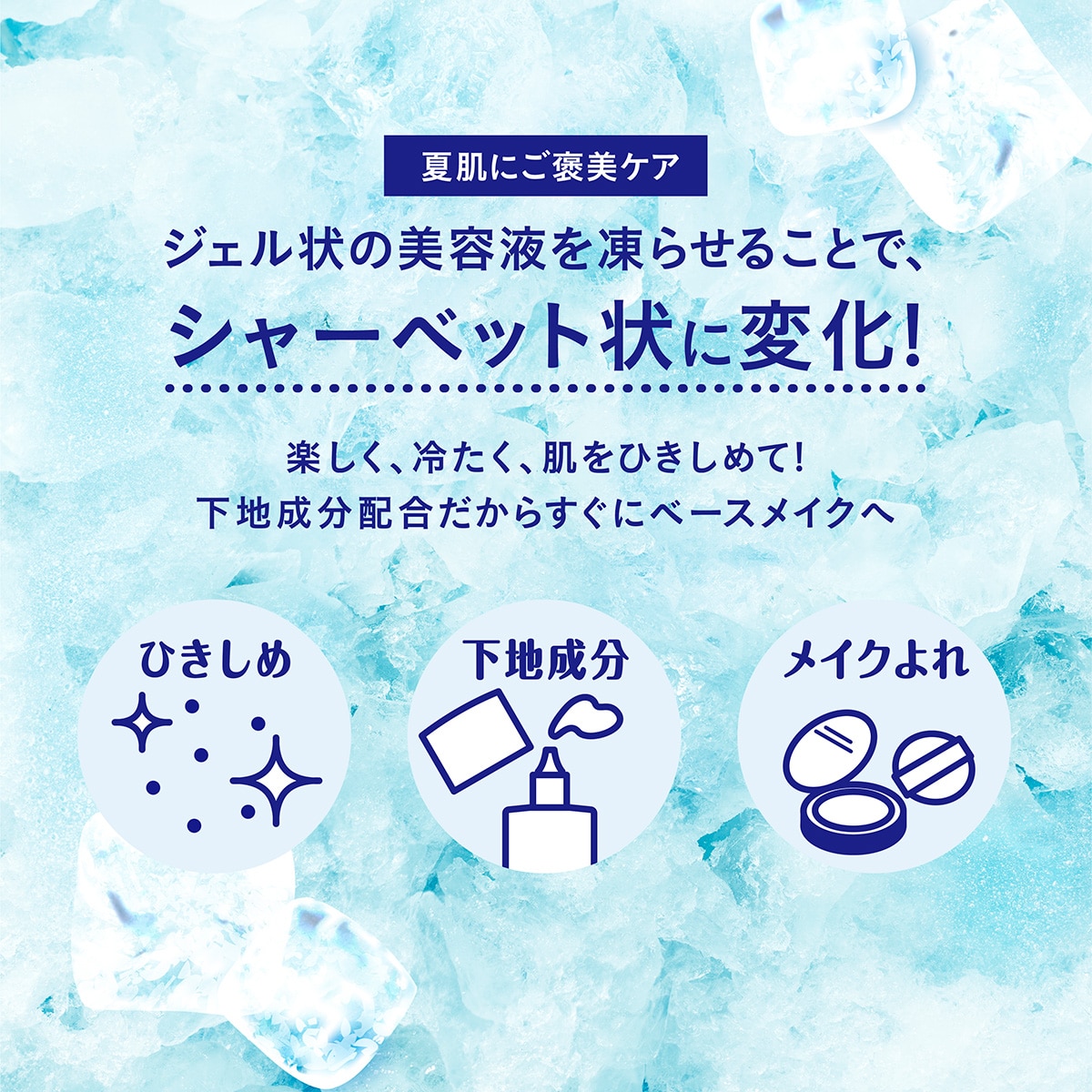 ●冷凍された美容液と、瞬間冷感成分で超冷感!毛穴の目立つ肌をひんやりキュッと引きしめます。