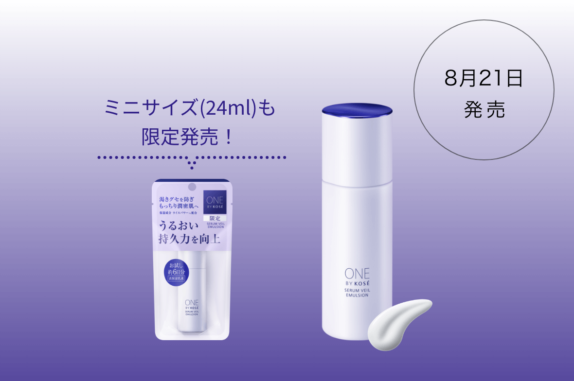 「ONE BY KOSÉ セラムヴェール ディープリペア」[医薬部外品]のミニサイズが定番化!うるおい密度が高い、もっちりとした肌に導くうるおい改善導入美容液を、是非ミニサイズからお試しください。
