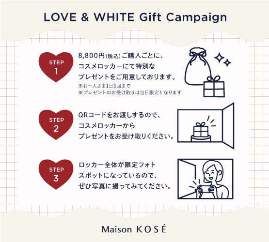Maison KOSÉハラカド店内商品を8,800円(税込)ご購入毎にコスメロッカーにて特別なプレセントを進呈いたします。