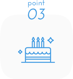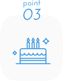 特典お客様におめでとうの気持ちを込めて。お誕生月に100ポイントをプレゼント。