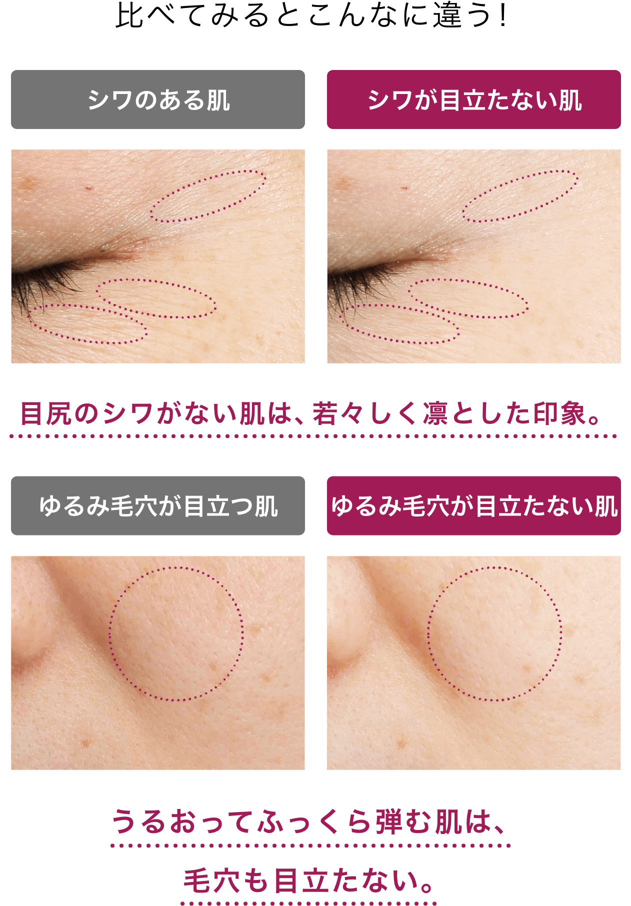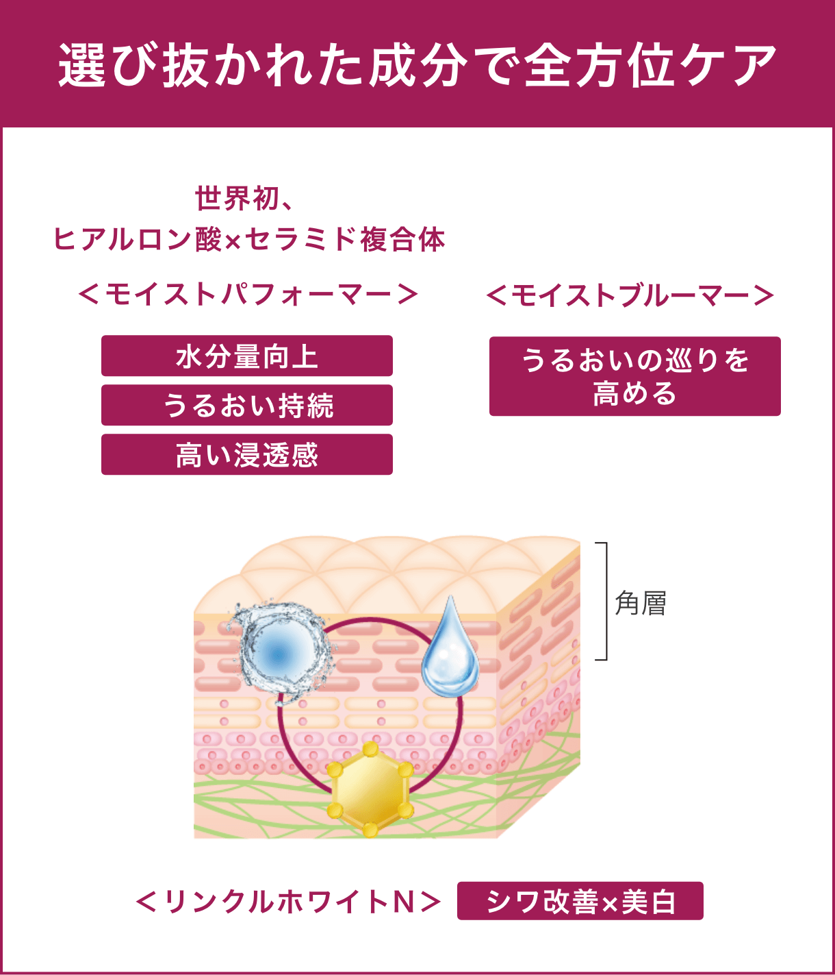 シワを改善しながら、くすみ・ゆるみ毛穴をケア。※くすみとは乾燥による ※浸透は角層まで