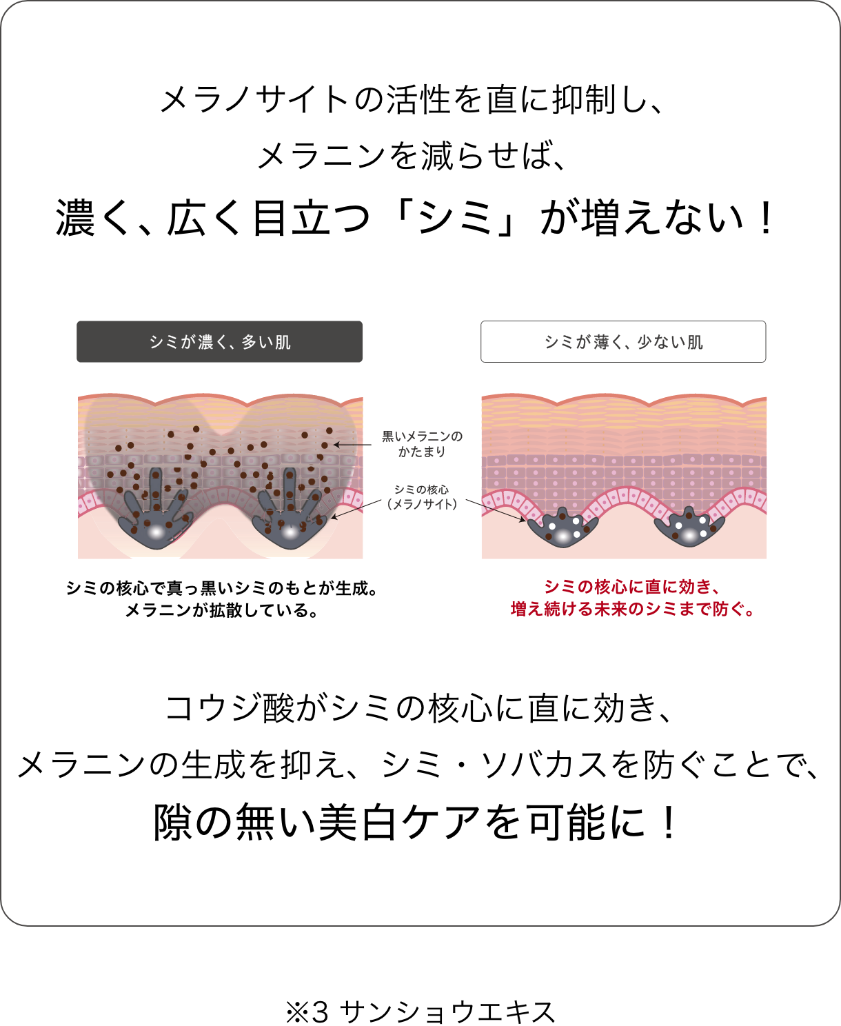 曇りのないクリアな肌、守り抜く。*シミの核心とはメラノサイト