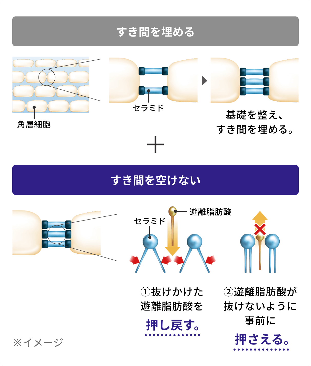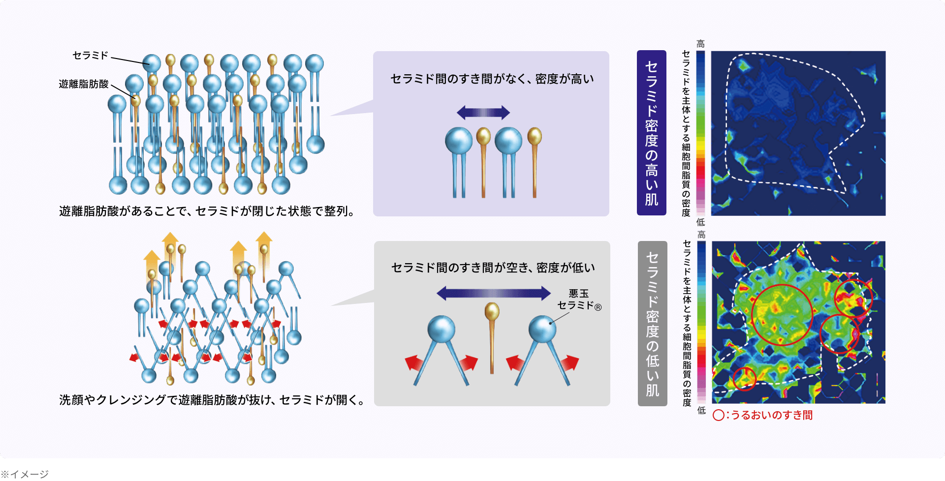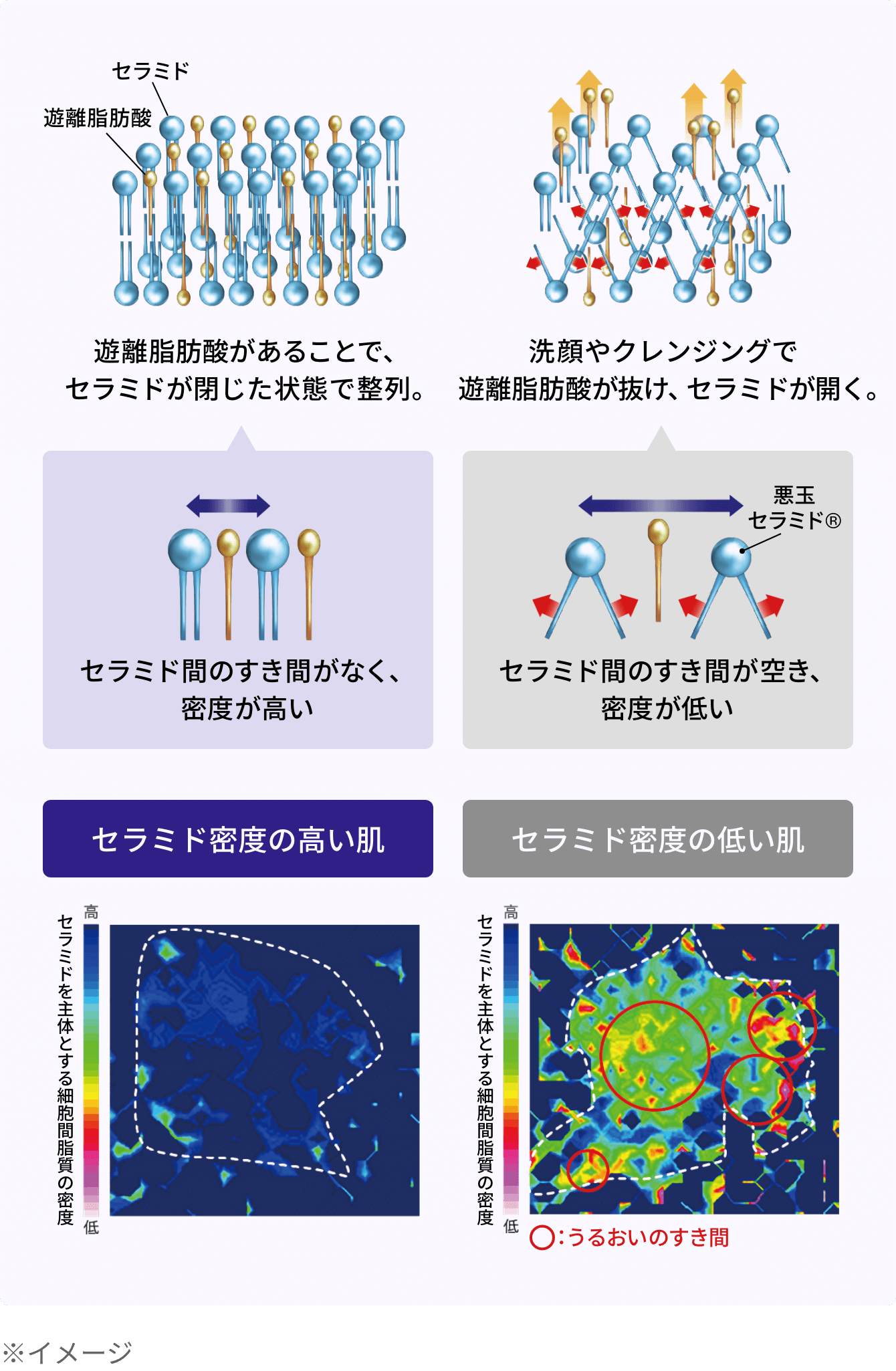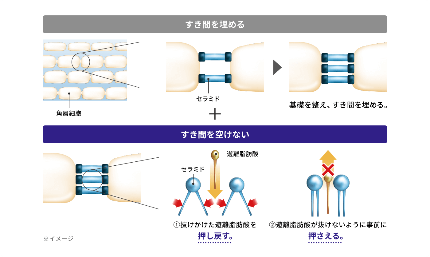 〈空けないケア(予防型)〉が重要! *セラミドがV型構造をとることで、細胞間脂質の密度が低くなること