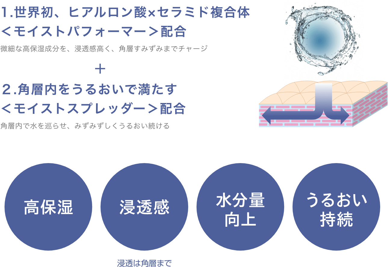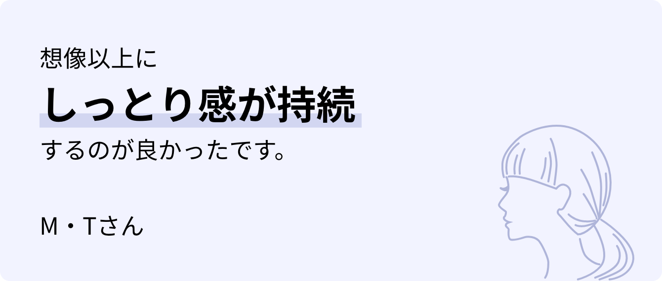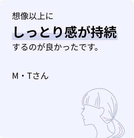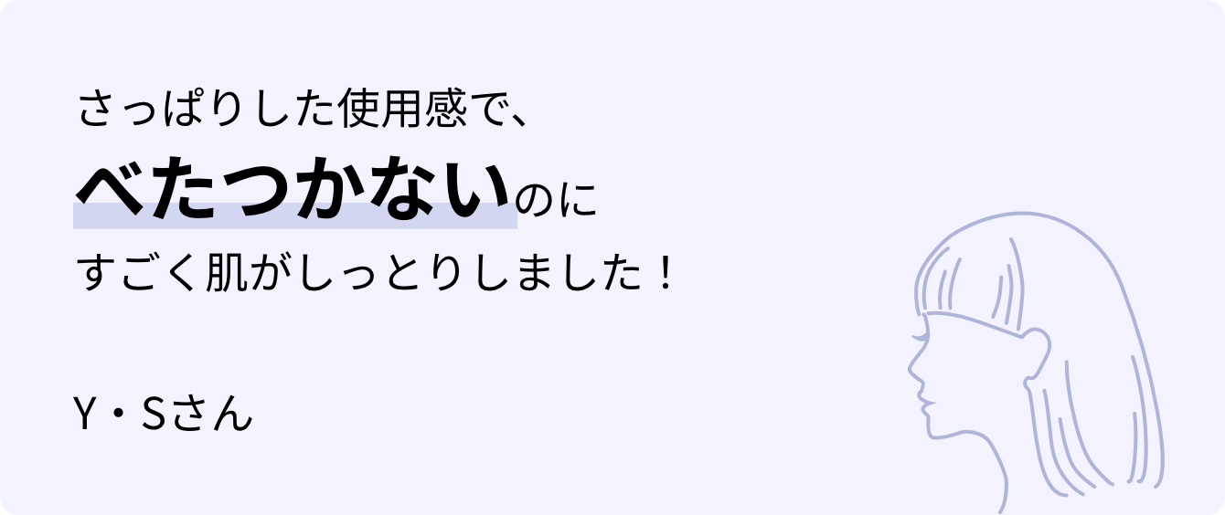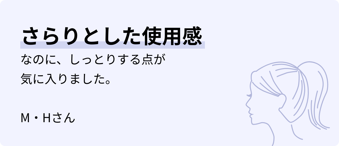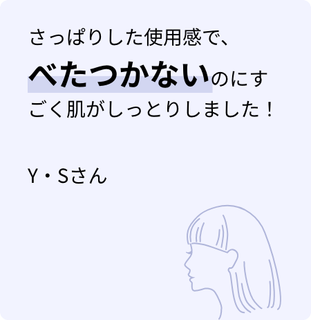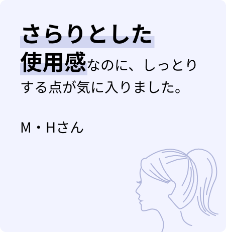 ベタつきのない使用感で、しっとりうるおい、つるんとなめらかな肌へ。