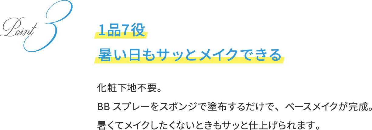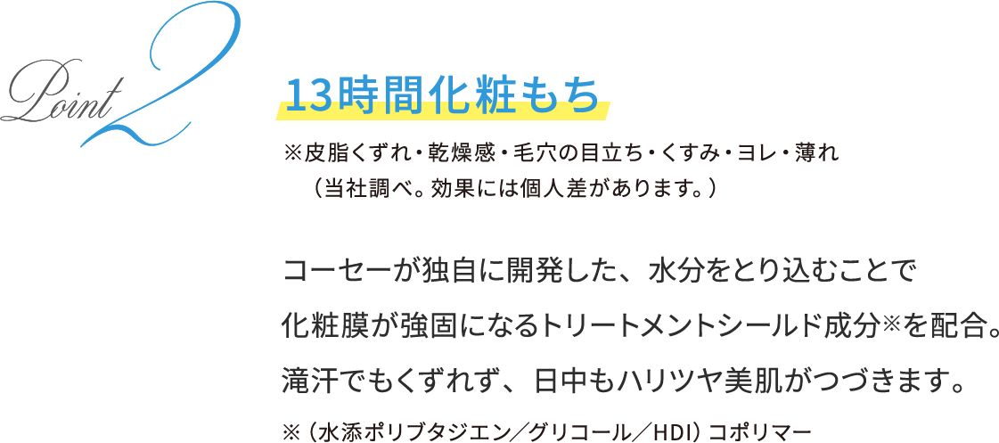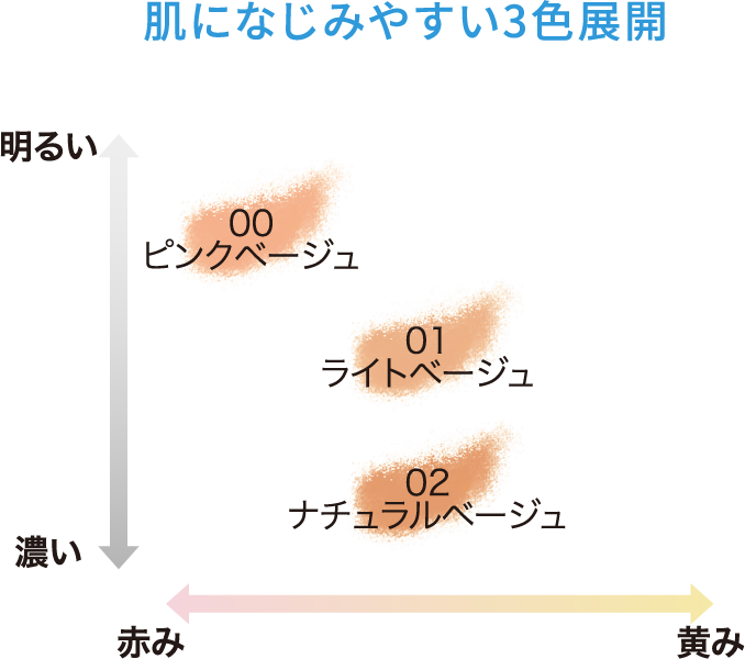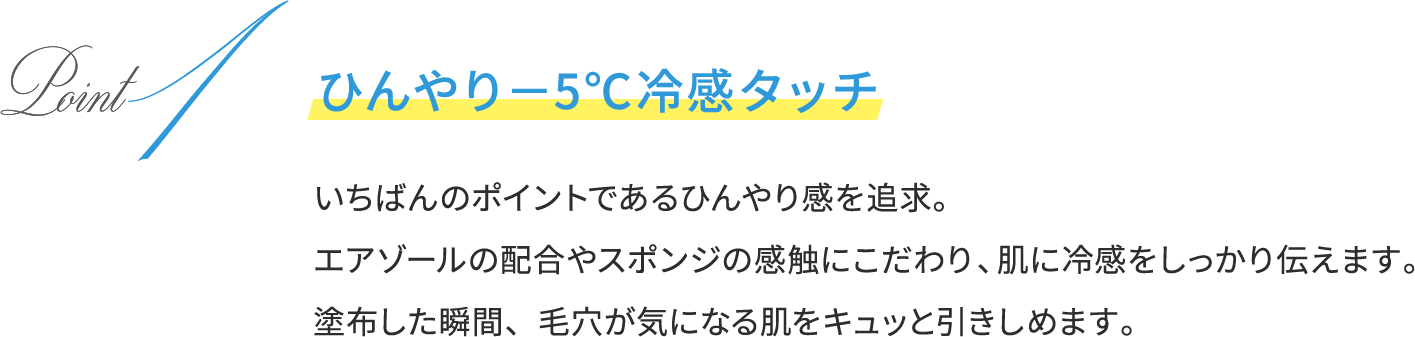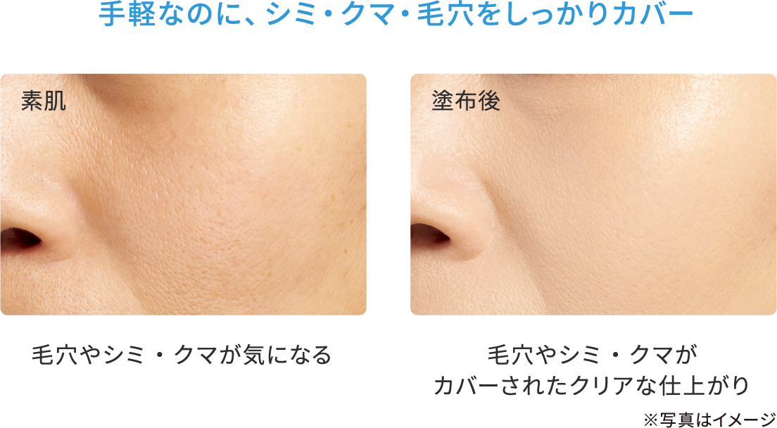 -5℃の冷感タッチで、毛穴の気になる肌をすっきり引きしめ、ハリツヤ美肌に。 シミ・色ムラをしっかりカバーしながら、テカり・汗くずれを防ぎ、さらりとした仕上がりが一日中つづきます。