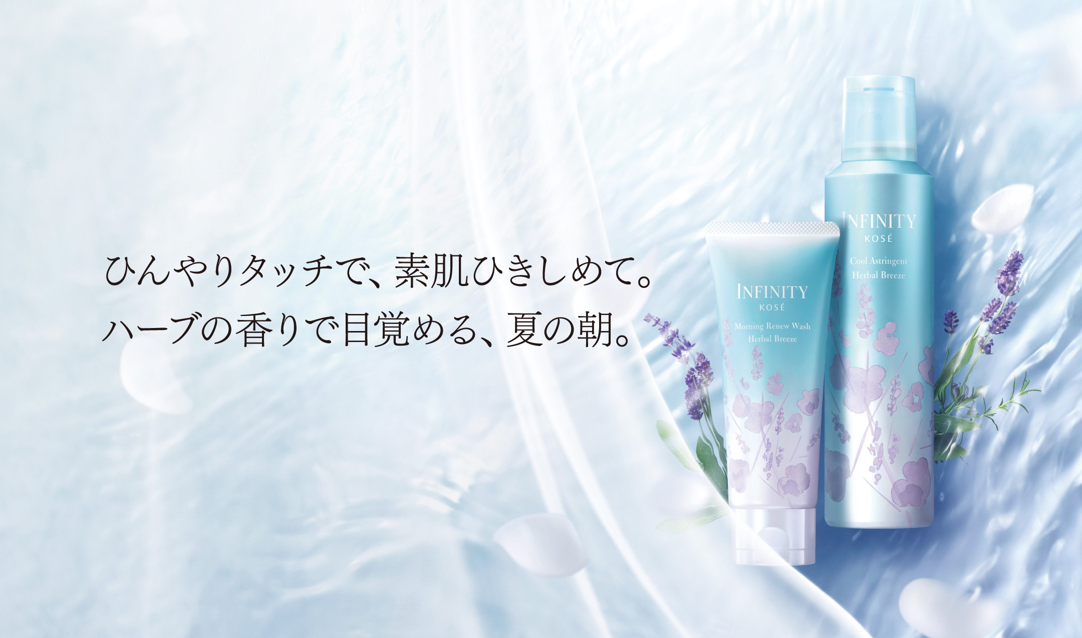 【 INFINITY 】 ひんやりタッチで、 素肌ひきしめて。 ハーブの香りで目覚める、 夏の朝。