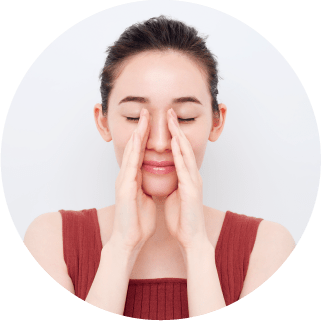 親指をあご先の裏にあて、人差し指を小鼻の横に置きます。