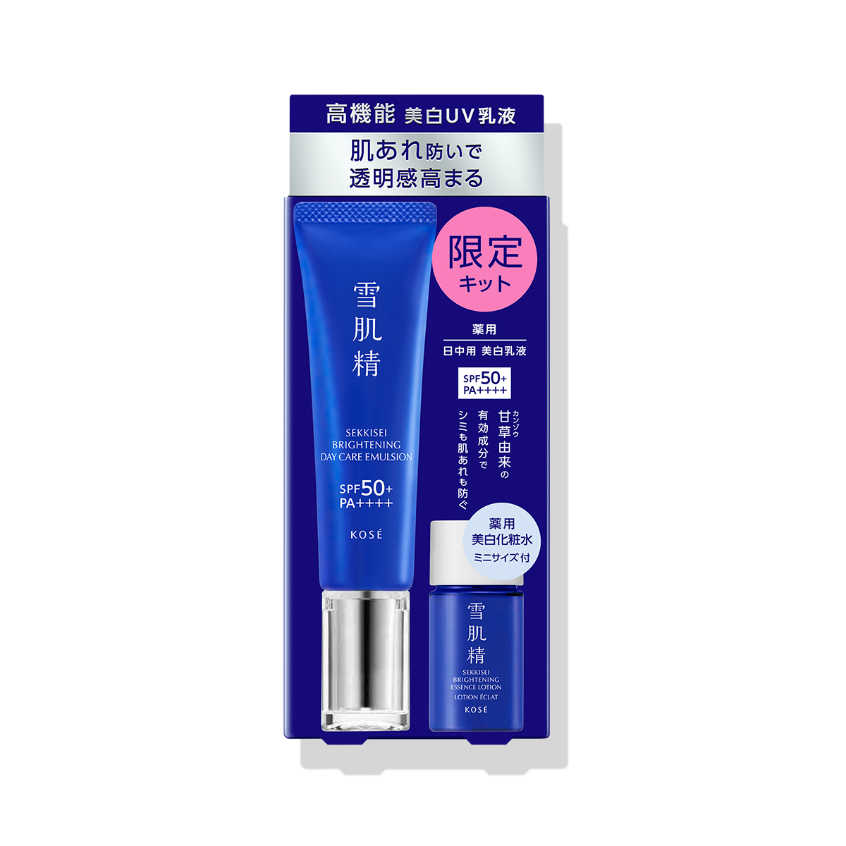 SPF50+/PA++++●乳液・日やけ止め・化粧下地の3つの機能を1品で叶える日中用美白UV乳液。紫外線ダメージから守り、乳液ならではの高いうるおい効果で肌を満たしながら、透明感あふれる明るい肌へ導きます。