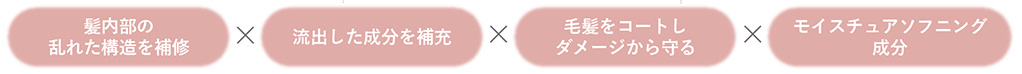 傷んだ髪内部に水分・油分を補給し、柔らかくときほぐされるような、しなやかでなめらかな髪へみちびきます。